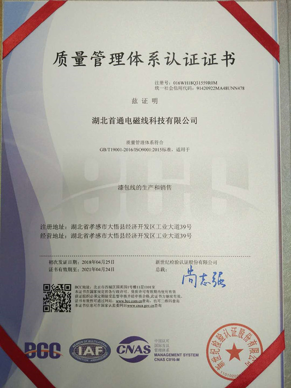 質(zhì)量管理體系認(rèn)證證書中文版