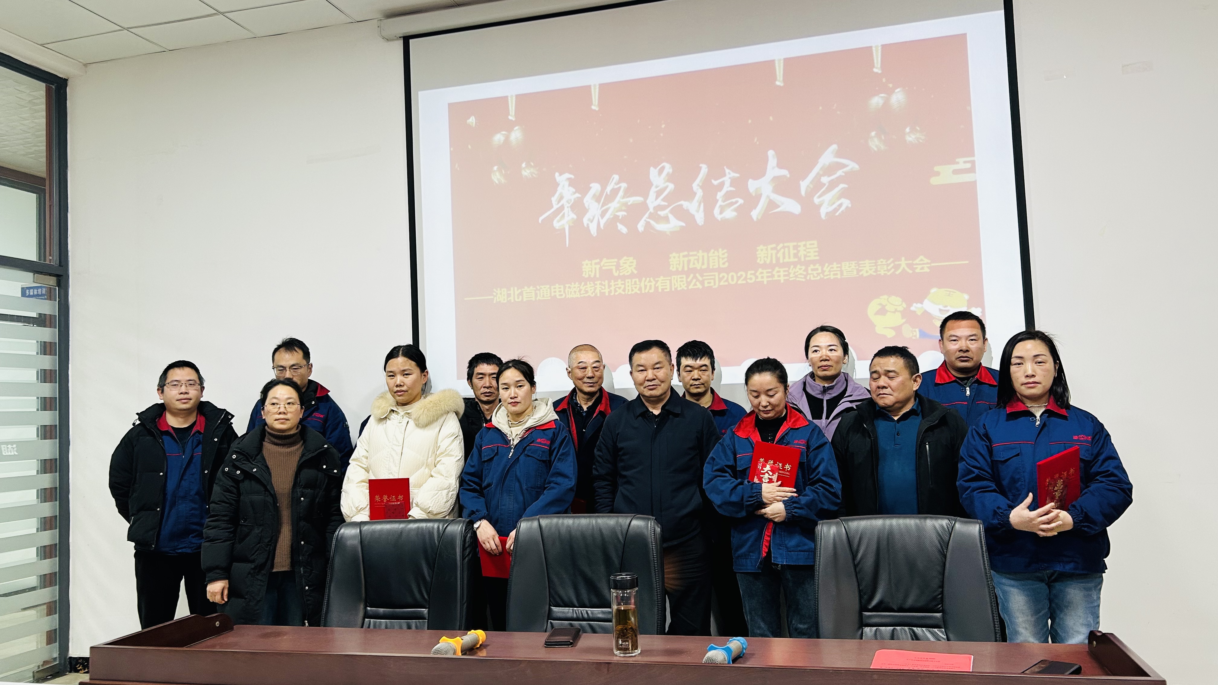 2026年2月7日,湖北首通電磁線科技股份有限公司2025年年終總結(jié)及表彰大會(huì)在公司一樓多媒體室隆重召開。公司賀董事長(zhǎng)、黃總、潘總與全體員工歡聚一堂,回望耕耘成果,表彰先進(jìn)典型,共話發(fā)展新篇。