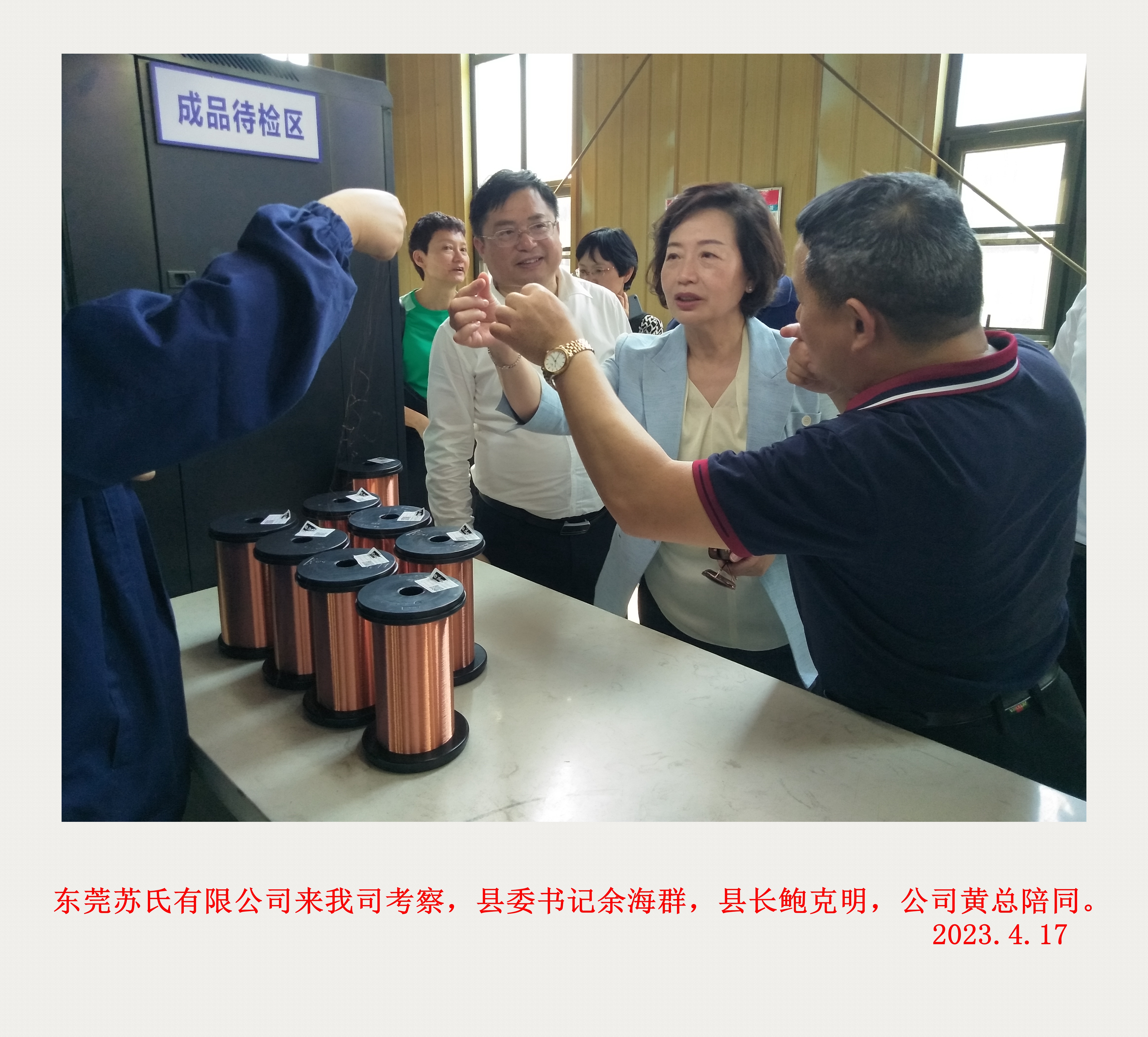 2023年4月17日 東莞蘇氏衛(wèi)生日用品有限公司考察團(tuán)來(lái)我司考察,孝感市委常委、組織部長(zhǎng)杭鶯,縣委書(shū)記余海群,縣委副書(shū)記、縣長(zhǎng)鮑克明,公司黃總陪同。